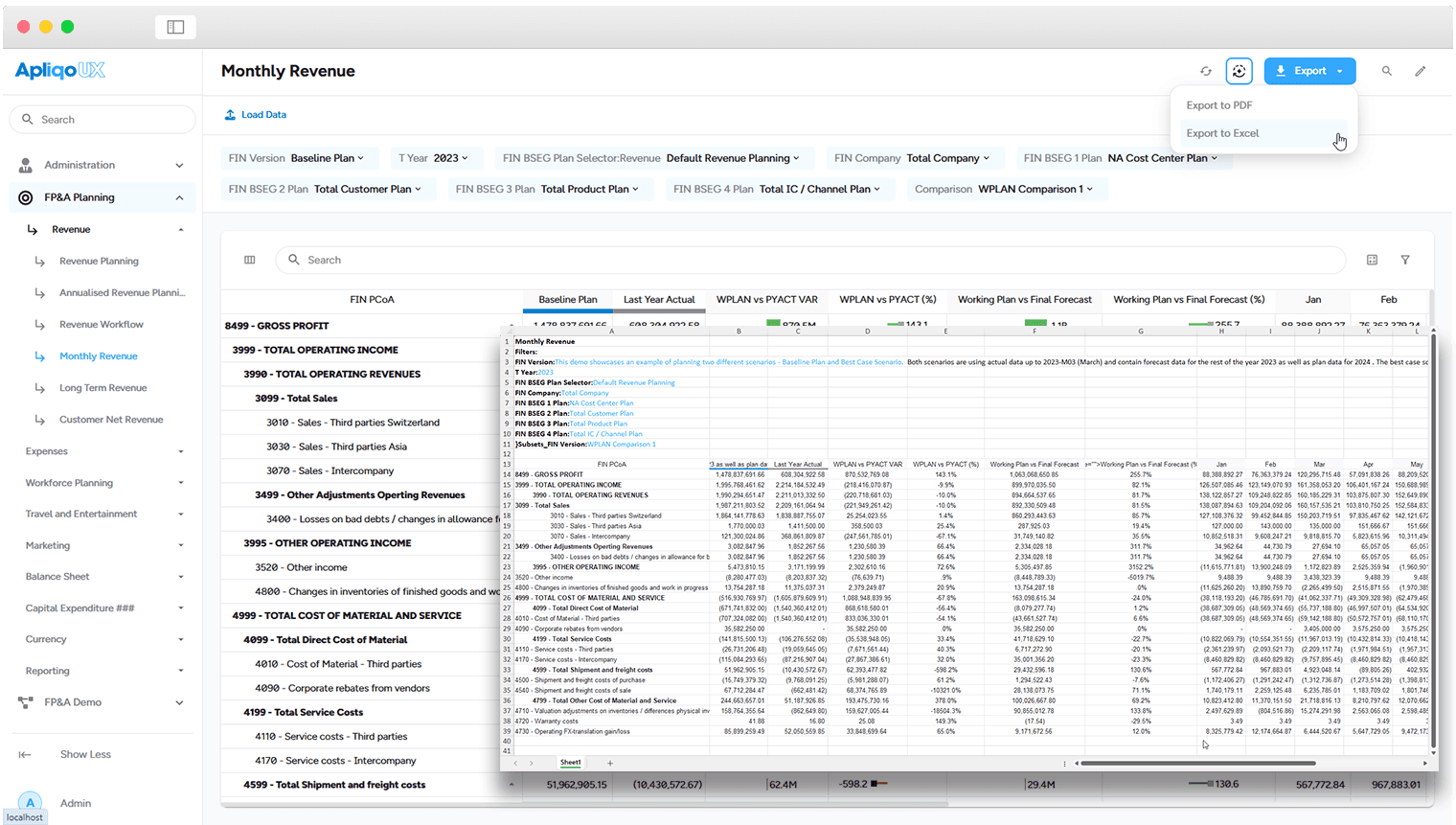 Augmenting Microsoft Excel with real-time access. Seamlessly integrate Apliqo FPM with Microsoft Excel, combining Excel’s flexibility with enterprise-grade real-time financial reporting.