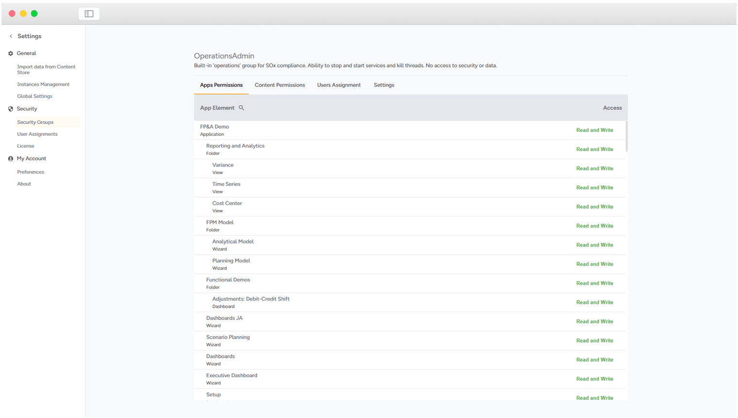 Ensure secure and controlled access with a granular permission system tailored to different user roles. The Apliqo FPM security model is based on users and groups, with predefined roles. Any user profile can be customized for more detailed read/write accesscontrol. Element-level securityensures restricted access to specific versions.