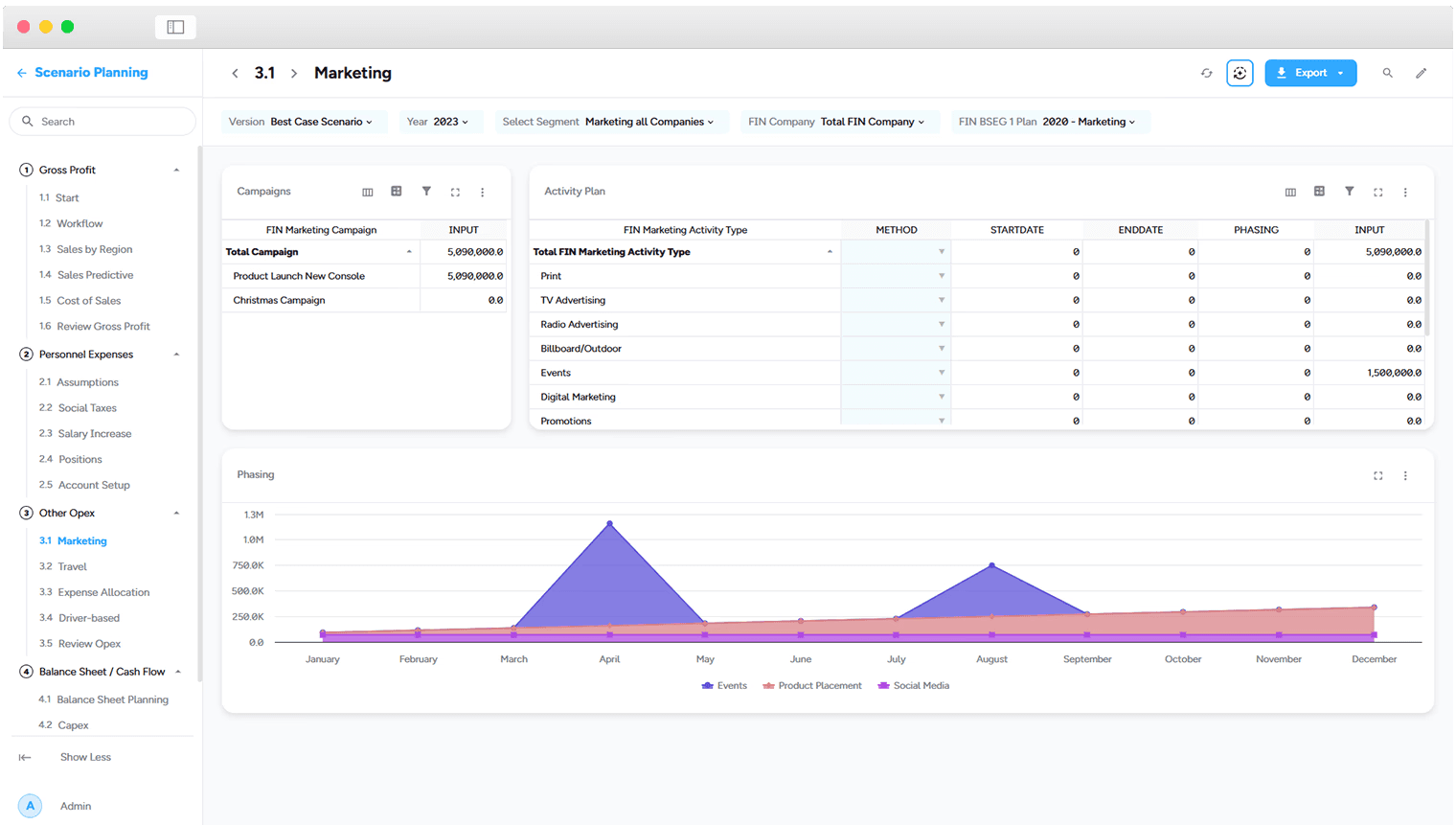 Capital expenditure (CapEx) – Asset investment planning, including depreciation calculations for P&L and balance sheet impact.