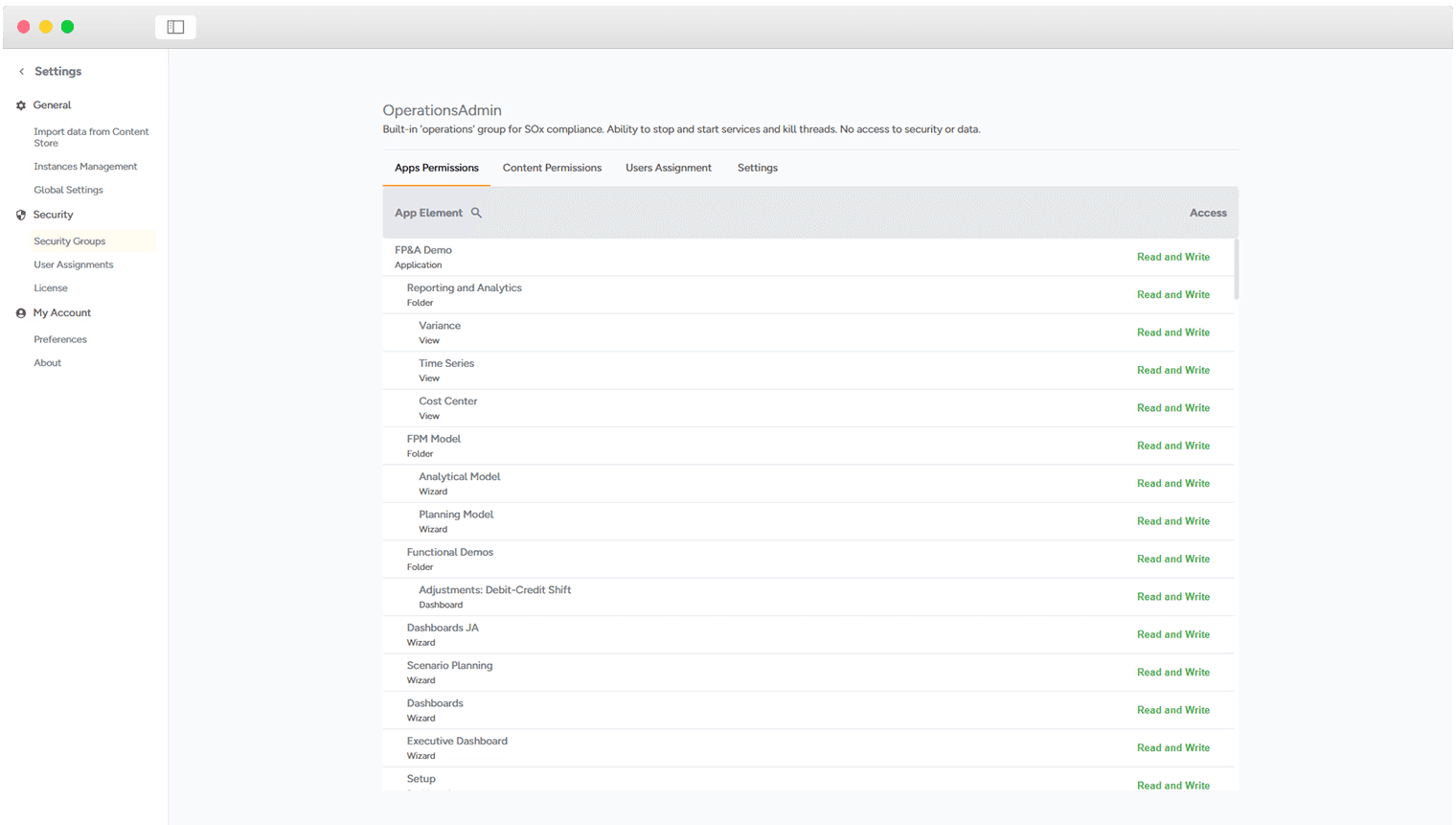 Ensure secure and controlled access with a granular permission system tailored to different user roles. The Apliqo FPM security model is based on users and groups, with predefined roles. Any user profile can be customized for more detailed read/write accesscontrol. Element-level securityensures restricted access to specific versions.